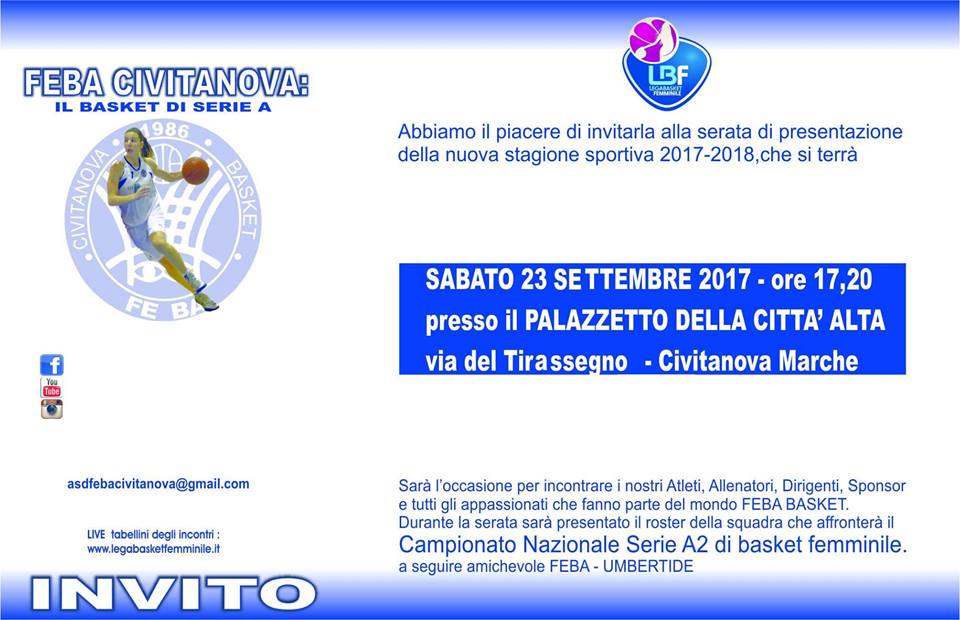 La Bagalier Feba Civitanova Marche domenica 23 novembre, alle ore 18.00, ospita il Basket Femminile Pontedera. Un match da prendere con le molle per le biancoblu, ancora imbattute tra le mura amiche del palas di Civitanova Alta, contro una compagine fanalino di coda con 2 punti. Squadra abbastanza fisica e da non sottovalutare con diverse giovani interessanti, tra cui Giulia Garbini, ed alcune veterane di spessore, come Lucia Puccini e la sempiterna Raffaella Costa. Le momò sono reduci dal Ko di Terni e arrivano a questa sfida con una grande voglia di rivalsa, consapevoli che due punti sarebbero fondamentali per continuare il loro cammino in campionato. Servirà la miglior Feba per regalare una nuova gioia ai tifosi biancoblu.