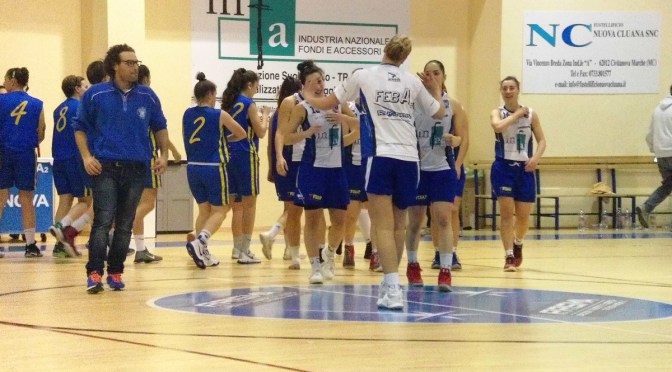 L’Infa Feba Civitanova Marche batte la Defensor Viterbo e vola in quinta piazza. Le momò riescono a battere le laziali, che finiscono a disputare i play-out, per 63-44 e vista la contemporanea sconfitta di Udine risalgono di una posizione in classifica generale. Pertanto incroceranno nei play-off le Giants Marghera arrivate in quarta piazza, a pari punti con le biancoblu ma con un quoziente canestri migliore. Si tratta del terzo successo consecutivo per le ragazze di coach Alberto Matassini, brave ad incanalare fin da subito il match nei binari giusti e a non perdere mai la lucidità, anche quando le ospiti sembravano poter riaprire la gara. Un buon viatico in vista dell’avventura play-off tutta da vivere. Le padrone di casa si portano subito al comando con i primi tre punti intascati da Mataloni a due minuti dalla sirena di inizio. A 6′ la tripla di Ceccarelli fa avanzare le biancoblu fino al +6, ma all’entusiasmo iniziale fa seguito una fase di magra. A metà frazione la squadra conduce il match 8-2 ma spreca qualche buona occasione. Viterbo cerca di inserirsi ma le momo’, nonostante le imprecisioni, riescono a portarsi avanti fino al +8 e a chiudere il periodo sul 14-6. A riaprire le danze e’ Kristina Ostojic che mette a segno quattro punti consecutivi (18-6), ma le ospiti rispondono a tono segnando un break di otto punti (18-13) che lascia le biancoblu a bocca asciutta per quattro minuti. La reazione arriva e si fa sentire: le ragazze di coach Matassini recuperano vigore e premono sull’acceleratore allungando fino al +10 (23-13) a 4′ dal termine. Ostoijc traina la squadra fino al 27-18, Gombac ci mette del suo mettendo a segno il canestro del 28-18 a due minuti dalla fine. A concludere ci pensa Silvia Ceccarelli con una tripla sulla sirena che difende il vantaggio a doppia cifra (33-23). Civitanova ritorna con una buona carica dalla pausa lunga. Una bella giocata di Gombac dopo due minuti di gioco allunga il vantaggio delle padrone di casa fino a 37-25, Trobbiani si accoda e centra il canestro del 39-25 che a meta’ frazione fa schizzare le biancoblu avanti di 14 punti. Le momo’ sono oramai imprendibili: la fuga continua con Ostojic che mette dentro il 43-31 a 2 minuti dalla fine. Gli ultimi canestri sono delle laziali che, trainate da Ciavarella, intascano qualche punto ma non possono far altro che chiudere il periodo sotto di otto (43-35). Non si fermano le momo’ e continuano a spingere nei dieci minuti finali. Ostoijc firma il primo canestro della frazione a 8′ (45-37) e passa il testimone a Mataloni che centra la tripla del 48-39. A questo punto alle ospiti non resta che guardare. Le momo’ continuano a macinare punti: a meta’ frazione le padrone di casa sono avanti di 15 punti (54-39), a tre minuti dalla fine Ceccarelli allunga fino al 59-40. Rimane giusto il tempo per due battute finali con i canestri di Zaccari e Stronati che chiudono il match sul 63-44. Testa ora a Marghera.