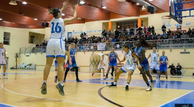 Una domenica tranquilla per le ragazze della Feba che si aggiudicano a mani basse l’incontro casalingo contro Alghero. Le bianco blu conducono comodamente per 40′ e chiudono con uno schiacciante 81-49 che lascia spazio a ben pochi commenti. Le padrone di casa si portano fin subito alla guida del match (8-2 a 3′ dall’inizio), le ospiti provono a rincorrere ma la Feba riesce ad allungare il passo: al 7′ di gioco Perini centra il canestro del +8 e guadagna un tiro libero supplementare portando la squadra a un passo dal vantaggio a doppia cifra (19-10) che arriva poco dopo con una tripla a firma Mataloni (22-10). Alle ospiti resta giusto il tempo per la battuta di fine quarto (22-13). Piede sull’acceleratore anche nel secondo periodo: a 4′ dal fischio di inizio Civitanova vola in avanti con un break di +10 sulle avversarie (32-23) che accusano il colpo e non riescono a ritrovare la via del canestro. A 2′ dalla fine Trobbiani sigla il 44-18: e’ un vero e proprio exploit per le bianco blu che governano il quarto dall’inizio alla fine e vanno al riposo lungo con un vantaggio comodo (46-20). L’intervallo non riesce a scuotere le sarde fiaccate dall’abisso che le separa dalle momo’: le ragazze di coach Matassini continuano a non concedere terreno anche se abbassano il ritmo tenuto nella prima meta’ del match. Le ospiti intascano 13 punti ma non basta per avvicinarsi alle padrone di casa che senza troppi sforzi chiudono ancora una volta con margine netto (62-33). La compagine casalinga si avvia serenamente al termine: Bocola mette a segno quattro canestri consecutivi mantenendo 30 punti di stacco (75-44 a 3′ dalla fine). L’ultimo canestro e’ bianco blu: questa volta il testimone passa a Paoletti, autrice del definitivo 81-49.