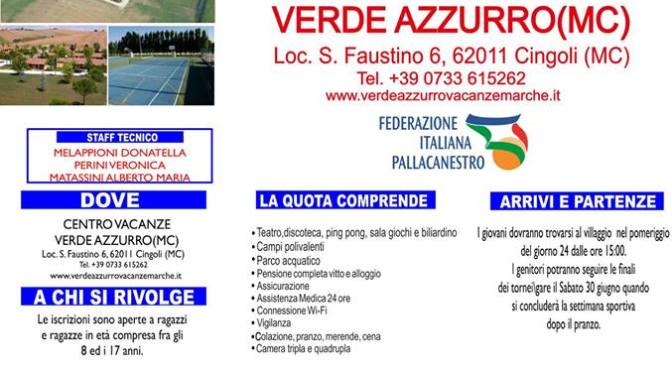 Dal 24 al 30 Giugno torna il Feba Summer Camp, edizione 2018, che si svolgerà in una nuova location. Infatti, dopo l’edizione dello scorso anno alla Fattoria Cerreto a Mosciano Sant’Angelo (TE), questa estate il camp biancoblu fa tappa al Centro Vacanze Verde Azzurro a San Faustino di Cingoli (MC), immerso nel verde delle colline marchigiane, un luogo dove potersi divertire tutti insieme, passare momenti di svago e soprattutto approfondire i fondamentali del basket con conseguente organizzazioni di tornei. Infatti lo staff qualificato della Feba Basket, Alberto Matassini, Donatella Melappioni e Veronica Perini, seguirà i ragazzini e ragazzine dagli 8 ai 17 anni in questa sei giorni di basket e svago. La quota d’iscrizione comprende teatro, discoteca, ping pong, sala giochi e biliardino, campi polivalenti, parco acquatico, pensione completa vitto e alloggio, assicurazione, assistenza medica 24 ore, connessione wi-fi, vigilanza, colazione, pranzo, merenda, cena, camera tripla o quadrupla. Per l’iscrizione di un secondo fratello o sorella sconto di 50 euro. Per ulteriori informazioni e per iscriversi al camp rivolgersi al 3282940675 o a asdfebacivitanova@gmail.com. Al momento dell’iscrizione è richiesta la tessera sanitaria, autocertificazione di eventuali allergie, certificato medico sportivo, documento di riconoscimento. I giovani dovranno trovarsi al villaggio nel pomeriggio del giorno 24 dalle ore 15.00. I genitori potranno seguire le finali dei tornei/gare il sabato 30 Giugno, quando si concluderà la settimana sportiva.