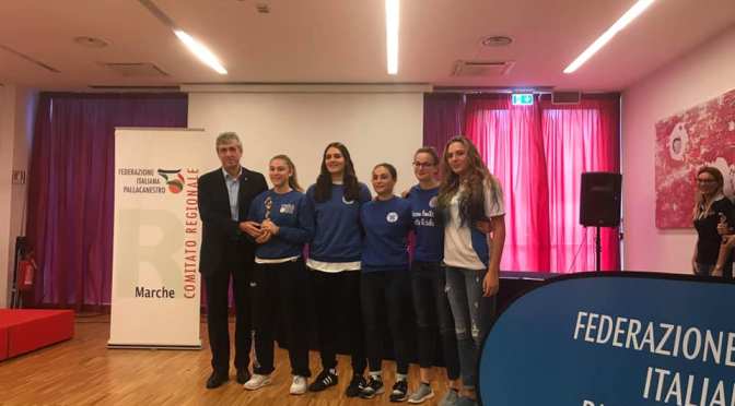 Nella mattinata di sabato 6 Ottobre al Klass Hotel di Castelfidardo si è svolta l’ormai tradizionale appuntamento di inizio stagione con la presentazione dell’attività 2018/2019, gestita dal CR FIP MARCHE, e con l’occasione sono state premiate le società vincitrici dell’ultima annata sportiva. Graditissimo ospite del Presidente Davide Paolini e tutto il Consiglio Regionale, il massimo dirigente federale FIP, Giovanni Petrucci accompagnato dal Vice Presidente Vicario Gaetano La Guardia. Una mattinata di premi anche per la Feba visto che sono state premiate le formazioni femminili under 13, vincitrice del titolo regionale, under 16, arrivata all’Interzona di Borgotaro, e under 18, giunta alla Finali Nazionali di Battipaglia, oltre alle atlete Giorgia Bocola ed Alessandra Orsili per le loro esperienze estive con la canotta della Nazionale: Alessandra prima con l’under 17 ai Mondiali di Minsk e poi insieme a Giorgia con l’under 18 agli Europei di Udine. La conferma di come la società punti molto sul settore giovanile e sulla qualità del lavoro svolto, visti i risultati brillanti sia delle proprie formazioni giovanili che delle giovani promesse biancoblu.