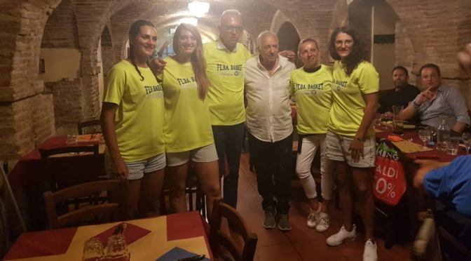Si è svolta giovedì 29 Agosto, presso il Ristorante Conte de Vico, la conviviale organizzata dalla Feba Civitanova Marche per aprire la nuova stagione: un’occasione per incontrarsi insieme a parte delle giocatrici e staff tecnico, della dirigenza, e degli sponsor che da sempre hanno appoggiato e sostenuto il progetto Feba per fare il punto sulla nuova annata. Presente all’incontro anche l’Amministrazione Comunale, con il Sindaco Fabrizio Ciarapica e l’Assessore allo Sport Maika Gabellieri, ed il Presidente FIP Marche Davide Paolini. Si è parlato della nuova stagione agonistica ormai alle porte oltre che dei traguardi raggiunti nel corso di questi anni dalla Feba, da sempre fucina di talenti con il suo settore giovanile, con il gm Elvio Perini che ha tracciato la rotta per la nuova annata: obiettivo primario la volontà di continuare a migliorarsi sia per quanto riguarda la prima squadra femminile che per i risultati raggiunti in tutto il settore giovanile. Lo scopo è quello di far maturare le nuove giocatrici del futuro che stanno crescendo nel vivaio biancoblu, uno dei più floridi della regione, confermato dal passaggio in A1 di Alessandra Orsili, dopo i doppi successi con le nazionali U.20 e U.18, ma anche dalle giocatrici che sono cresciute nella società biancoblu e che sono approdate nel corso degli anni in A2. Il presidente FIP Marche Davide Paolini ha riconosciuto l’impegno della Feba in questi anni sia a livello di settore femminile che di maschile, oltre all’importanza della società essendo l’unica squadra femminile delle Marche che in milita in A2. Il Sindaco Fabrizio Ciarapica ha evidenziato anche l’importanza del sodalizio biancoblu dal punto di vista sociale, visto per l’impegno che viene messo ogni anno nel settore giovanile per formare nuove giocatrici e giocatori, con il basket che è una vera e propria “palestra di vita” per tutti loro. Infine l’Assessore allo Sport Maika Gabellieri ha evidenziato come l’importanza di un impianto gestito ottimamente dalla società biancoblu, quello di Civitanova Alta, sia stato importante per lo sviluppo della Feba in questi anni, tanto che il sodalizio è diventato un motivo di orgoglio per tutta la regione visti i risultati conseguiti. Al termine della serata al Sindaco Ciarapica e all’Assessore Gabellieri sono state donate due maglie Feba, quelle usate nella fase di riscaldamento prima delle partite, personalizzate con i loro nomi. Un regalo molto gradito dai due nuovi “momò” che hanno confermato la vicinanza dell’Amministrazione Comunale alla società biancoblu.