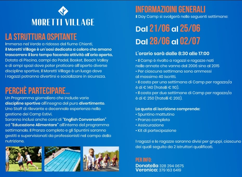 Tornano ad unire le forze le quattro realtà del basket cittadino e lo fanno per regalare ai più piccoli un’occasione di svago e divertimento. Virtus, Il Picchio, Feba e Civitabasket, infatti, organizzano al Moretti Village il Citanò Day Camp. Un camp estivo dove bambini e ragazzi nati tra il 2006 e il 2015 potranno ritrovarsi per trascorrere ore piacevoli agli ordini dello staff delle quattro società cestistiche civitanovesi. Il camp si terrà in due sessioni, dal 21 al 25 giugno la prima e dal 28 giugno al 2 luglio la seconda (con la possibilità di un’ulteriore settimana in caso di un alto numero di prenotazioni) e prevede un programma giornaliero che va dalle 8.30 alle 17 con attività molto variegate, basate non solo sullo sport. Al fianco delle attività sportive, infatti, saranno inclusi anche corsi di “English conversation” e di educazione alimentare e all’interno del pacchetto sono inseriti anche il pranzo completo e spuntini gestiti e supervisionati dai professionisti nel campo della nutrizione. Il tutto nella stupenda struttura del Moretti Village, immerso nel verde a ridosso del fiume Chienti: un’oasi dedicata a coloro che amano trascorrere il loro tempo facendo attività all’aria aperta. Il villaggio è dotato di piscina, campi da padel, basket e beach volley e ampi spazi dove poter praticare all’aperto diverse discipline sportive. Un luogo dove i ragazzi potranno divertirsi e socializzare in sicurezza. Il costo per una settimana di camp (per ogni settimana sono ammessi al massimo 40 iscritti) il costo è di 140 euro, ma nel caso di due fratelli il secondo/a paga 110 euro. Il costo per due settimane è invece di 250 euro a ragazzo, 200 euro per il fratello/sorella. La quota comprende spuntino mattutino, pranzo completo, assicurazione e kit di partecipazione. I ragazzi e ragazze saranno divisi per gruppi, ciascuno dei quali seguito da due istruttori qualificati. Per info: Donatella (328 2940675), Veronica (379 1636419).