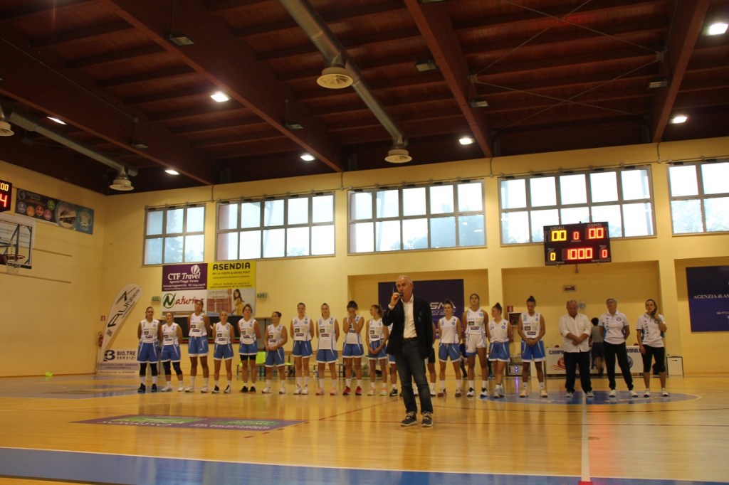 Sul parquet poi si sono date battaglia le momò ed Umbertide, in un assaggio di campionato. Le biancoblu hanno chiuso avanti 15-11 il primo quarto grazie ad una buona difesa ed a delle trame di gioco efficaci con una bella circolazione di palla. Stesso canovaccio tattico nel secondo periodo, con le biancoblu che hanno tenuto bene il campo concedendo poco. Le umbre hanno un guizzo negli ultimi tre minuti e rientrano in partita sul 28-25 con cui si va al riposo lungo.