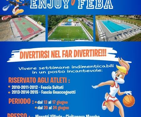 Dal 13 al 24 Giugno prenderà il via il Camp Enjoy Feba, una proposta ricca e divertente per gli atleti e le atlete delle annate dal 2010 al 2015. La splendida location del Moretti Village a Civitanova Marche, in 13 ettari di verde, farà da sfondo a due settimane di divertimento, giochi e compagnia dal lunedì al venerdì dalle 8.00 alle 17.00 con giochi motori, gare di tiro, bagno in piscina, e molto altro per garantire un’esperienza unica a tutti i partecipanti.