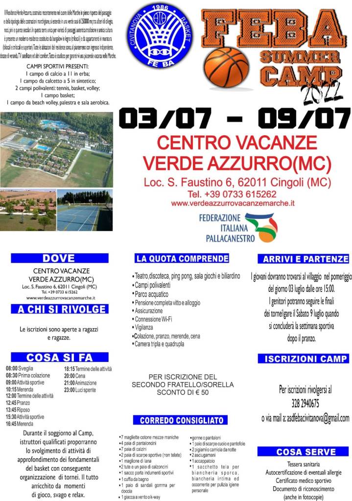 Un’altra esperienza unica è prevista dal 3 al 9 Luglio con il Feba Summer Camp 2022 presso il Centro Vacanze Verde Azzurro di San Faustino di Cingoli. Immerso tra le morbide e verdeggianti colline delle Marche, è certamente il luogo ideale per trascorrere una vacanza in relax tra sport e tanto divertimento. I giovani e le giovani amanti del basket non possono perdersi uno degli appuntamenti “storici” del mondo Feba, con la possibilità di vivere momenti indimenticabili seguiti da uno staff altamente qualificato tra basket e divertimento. Per info contattare il numero 3282940675 (Donatella).