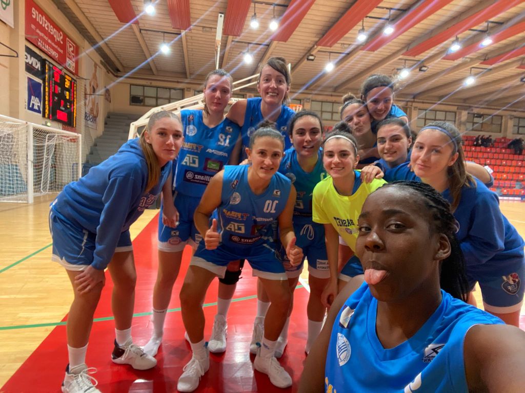 “La partita è iniziata in maniera contratta da parte nostra, – commenta coach Iris Ferazzoli – con poca lucidità in attacco, lo dimostra il basso punteggio realizzato nella prima metà di gara. Nel terzo quarto abbiamo iniziato un po’ meglio alzando il ritmo soprattutto in difesa che ci ha permesso di recuperare diversi palloni, facendo buoni canestri in contropiede e tenendo sotto controllo Duran (appena 8 punti realizzati fino a quel momento), trovando un coraggio diverso nell’altra metà campo. Alternando la difesa a uomo a quella a zona siamo riuscite a fare un piccolo break che le nostre ragazze nel finale di partita hanno saputo gestire. Buon contributo di chi è entrato dalla panchina e buone conferme da parte di Binci, Jaworska, e Malintoppi, che ha stretto i denti per un piccolo infortunio. Bene Medori, Angeloni e Severini, con loro in campo è iniziata e si è mantenuto il trend positivo della partita, oltre al solito contributo da parte di Trobbiani e Secka. Chi non è entrato in campo ha dato il suo contributo con la voce dalla panchina, spingendo ed incoraggiando le compagne in ogni istante e questo è un’altra arma in più della nostra squadra. Vincere sempre fa bene, questo gruppo può solo crescere sia in attacco che in difesa e potrà togliersi delle belle soddisfazioni”.