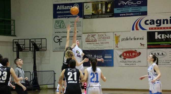 La Feba Civitanova parte a rallentatore e le ospiti, con giocate semplici, toccano il 4-10 a metà frazione. Le momò si accendono negli ultimi cinque minuti e con un break mortifero di 12-0 ribaltano la situazione, chiudendo poi la prima frazione sul 22-12. Nel secondo quarto il match va a fiammate, con le biancoblu che faticano dannatamente in attacco mentre le ragazze di coach Luconi trovano buone soluzioni da tre. Le ospiti operano il sorpasso, con la Feba che si sblocca dopo 6 minuti. Al riposo lungo il tabellone recita 28-37. Nel terzo quarto le momò ripartono con altro piglio e riescono ad accorciare sulle avversarie, grazie alla solita Jaworska e a una Trobbiani ispirata. Ora è Senigallia a fare fatica in attacco e le biancoblu operano un nuovo controsorpasso, 46-42 alla conclusione della terza frazione. Ultimo periodo che va ancora a fiammate: le ragazze di coach Ferazzoli arrivano sul +11, 55-44 grazie alle giocate di Binci, ma non riescono ad ammazzare del tutto la partita. Senigallia, sorretta da Duran, prova a rimanere in scia ma negli ultimi due minuti riesce solo a limare lo svantaggio, con la tripla allo scadere della venezuelana che vale il 63-58.