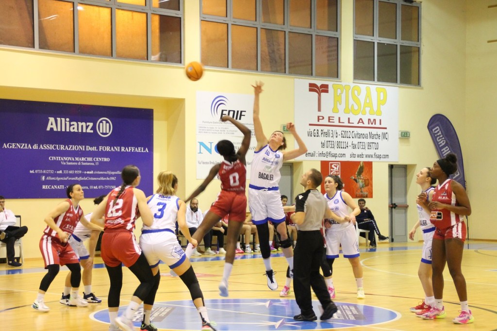 La Feba Civitanova cade dopo 13 vittorie consecutive. Nella penultima sfida della fase ad orologio, con la classifica già delineata che vede le momò in vetta solitaria, le biancoblu incappano nel primo stop della stagione 2023-2024 contro la Sisas Perugia per 51-65. La compagine di coach Donatella Melappioni si è presentata all’appuntamento con diverse giocatrici non al top, causa acciacchi, che non sono riuscite ad esprimersi al meglio in mezzo al campo, contro una Perugia che ha cambiato fisionomia con l’innesto della lunga polacca Falkowska.