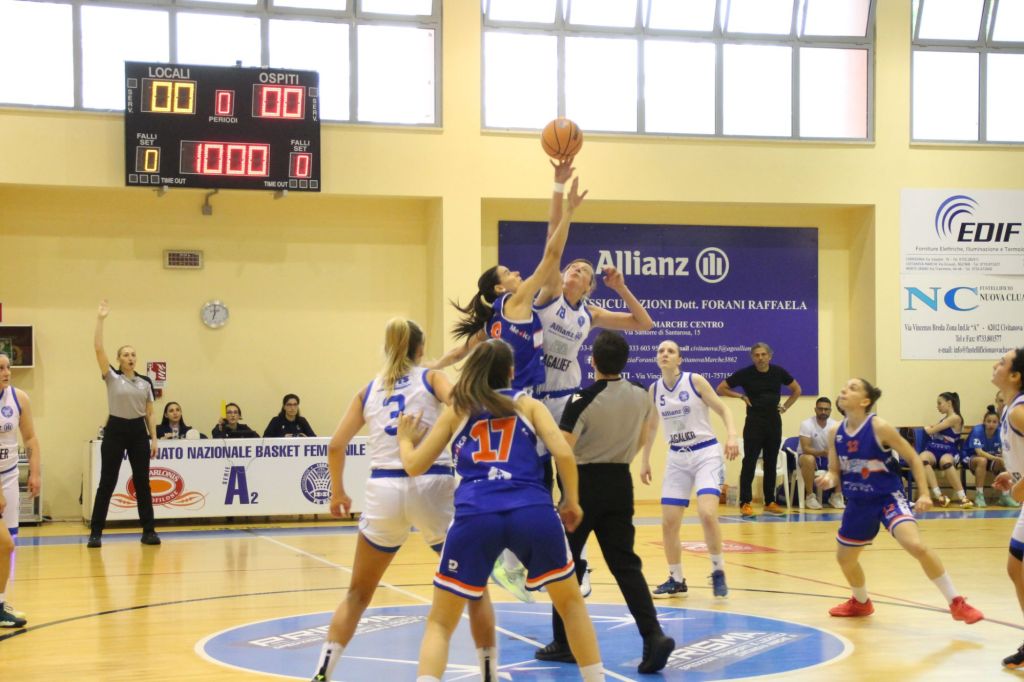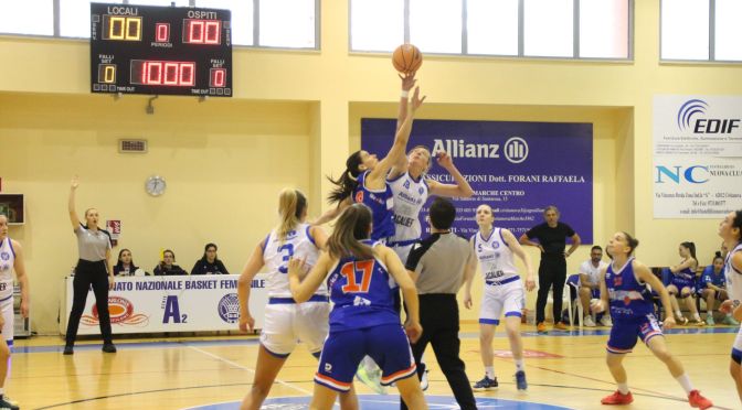 La Feba Civitanova Marche sfiora l’impresa contro la Virtus Cagliari in gara 2 della sfida spareggio valida per ottenere il pass per le finali nazionali, sfoderano una grande prestazione e riuscendo quasi nell’impresa di ribaltare il -19 dell’andata. Una prova di carattere per le momò che cedono per 75-62 dopo esser state sotto per larghi tratti del match. Sul finale di terzo quarto le biancoblu hanno trovato l’allungo decisivo, riuscendo poi nell’ultima frazione ad incrementare il margine ma non è stato sufficiente per ribaltare il -19 dell’andata. Anche se sfuma il sogno delle finali nazionali, per le ragazze di coach Donatella Melappioni rimane una stagione più che positiva. Avvio forte da parte della Virtus Cagliari che nei primi tre minuti trova subito un primo allungo toccando il +9. Le momò iniziano a carburare nel corso della frazione ma sono sempre costrette a rincorrere, in un match che vede le sarde riuscire sempre a ricacciare i tentativi di rientro da parte delle biancoblu. Dopo aver inseguito per larghi tratti del match, nel finale di terzo quarto la Feba riesce a chiudere sul +4, mettendo in crisi la compagine avversaria con il quintetto Binci, Sciarretta, Pelliccetti, Angeloni e Jaworska. Nell’ultimo quarto le momò allungano in un crescendo rossiniano, con le ospiti che fanno fatica a trovare la via del canestro ed a contenere la manovra delle padrone di casa. Qualche errore di troppo nel finale fa sfumare il recupero dei 19 punti di scarto dell’andata ma si chiude tra gli applausi del numeroso e caloroso pubblico biancoblu, presenti anche i ragazzini e ragazzine del settore giovanile.