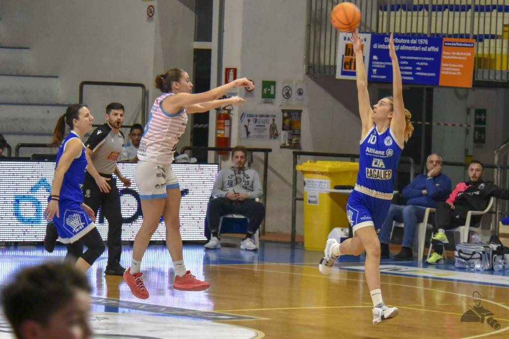 La Bagalier Feba Civitanova Marche si arrende in quel di Matelica. Le momò, nel derby che apre il girone di ritorno, cedono per 75-45 contro le padrone di casa, che continuano la loro corsa nei piani nobili di classifica. Le ragazze di coach Donatella Melappioni, con Bocola in panca per onor di firma, pagano una serata no in attacco, non riuscendo a contenere la squadra di coach Sorgentone sorretta dalla verve offensiva delle sue principali interpreti. Dopo un primo quarto chiuso sotto di 9, 23-14, le biancoblu non sono riuscite ad invertire le sorti della sfida. Pur con una buona attenzione difensiva nel secondo periodo, con solo 6 punti all’attivo, negli ultimi due quarti le momò non sono più riuscite ad arginare le padrone di casa che hanno chiuso agevolmente sul 75-45 finale. Uno stop contro una squadra comunque di assoluto livello, anche se le biancoblu dovranno lavorare per sistemare alcune cose in vista delle prossime sfide.