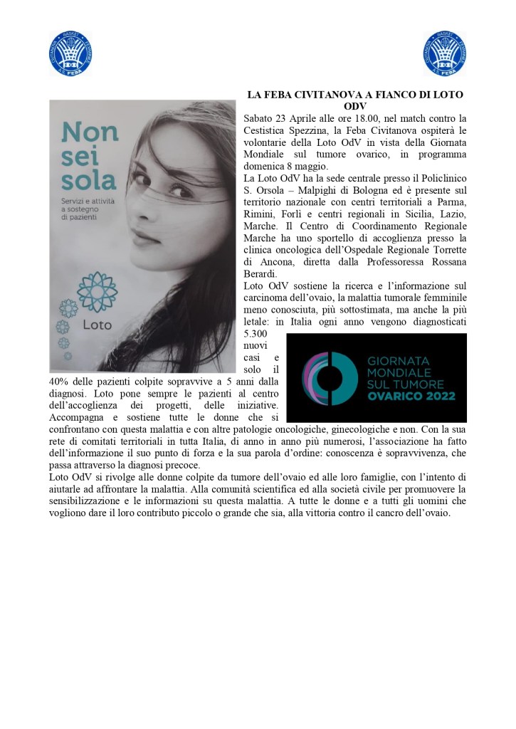LA FEBA CIVITANOVA A FIANCO DI LOTO ODV
